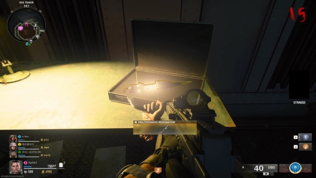 The Multiphasic Resonator device can be obtained inside a briefcase lying on a table. You can spot it easily as the case’s handle has just a hand and looks like its owner was torn apart by the zombies.