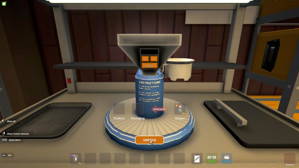 Instead of packing, you’ll remove all the items inside the Jar and Baggie, which should appear in the Product and Packaging slots.