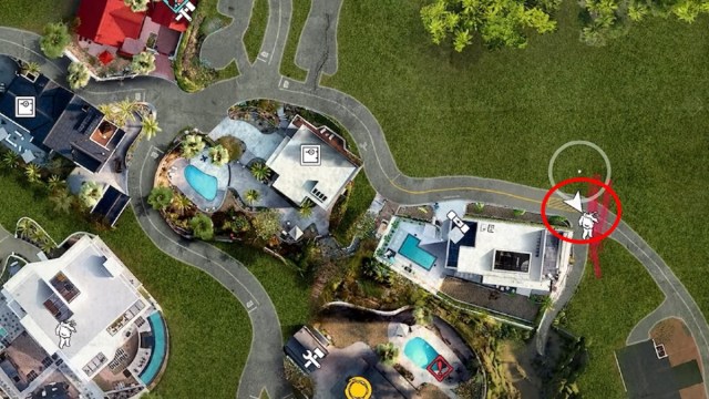 Before we get to the Garage Safe Key drop location, let’s first start at the family garage safe location, which is in the house with the open garage door in the district. Once you are going down the road, instead of going inside the garage door, continue going straight and follow the road.