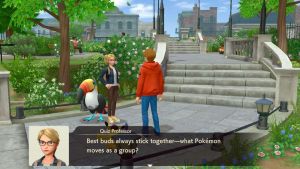 The Quiz Professor will ask you three questions, each one coming after the previous one is solved. You won’t be able to give her the answer until you’ve found the Pokemon she’s asking for around Ryme City: