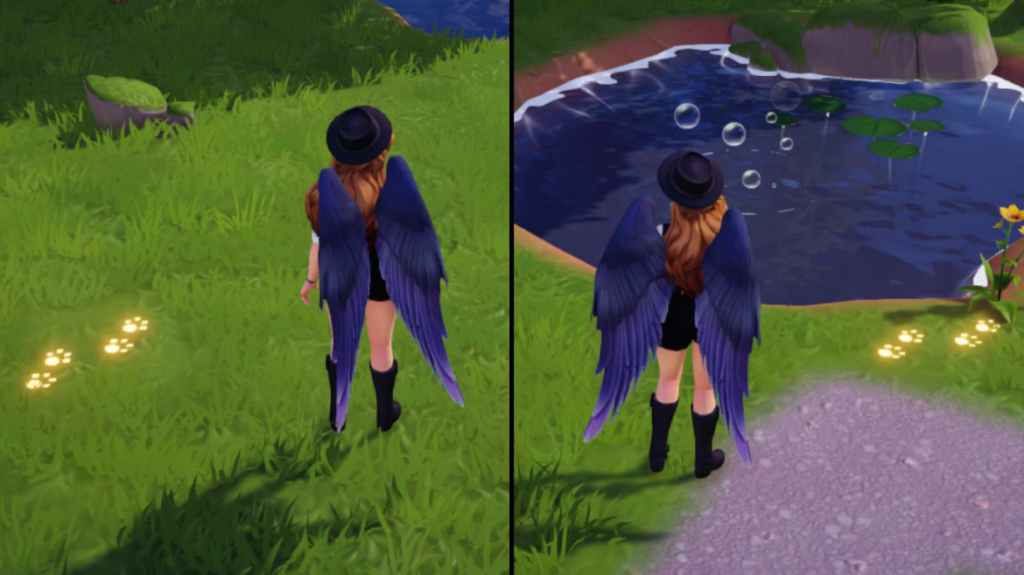Upon arriving in Peaceful Meadow, your next task is to search around for clues of Pua’s whereabouts. Search the area for glowing, yellow hoofprints to lead you in the right direction. While doing this doesn’t pinpoint Pua’s precise location, it’ll provide clues on where he might’ve ventured. This is exactly what happens as Moana suspects he went to Remy’s restaurant to look for food. Head here for the next part of this quest!