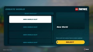 To create a new world in LEGO Fortnite, you’ll first need to select the LEGO Fortnite option from the main screen. Once you have loaded into the lobby, you’ll have to select a world that you would like to join.