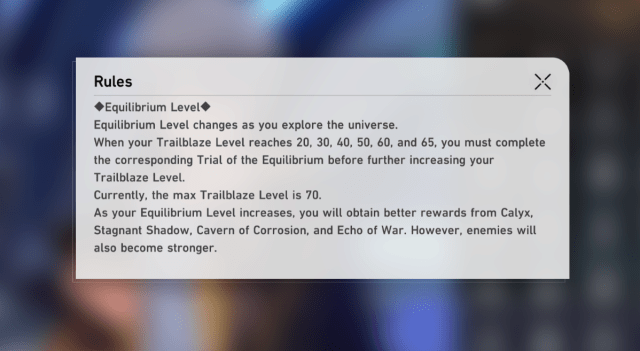 Honkai: Star Rail has a pretty unique system in the way it holds back building characters beyond your capabilities by way of capping you at certain Equilibrium Levels. By using your cap, you know where to stop when it comes to leveling up characters to their max. At Equilibrium 3, your characters will be capped at Level 60, this gives you the perfect chance to level them up to that point, their Light cones as well, and then focus on Traces.