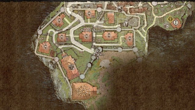 From here, you’ll want to return to the Gaol in the Royal Quarters and speak with Magistrate Waldhar once again to let him know that you’ve found a place for him to run away and hide in. It’s up to you to guide him out of the Gaol, so head toward the back of the building and use the key that Brant gave you to take him outside. Waldhar will not follow you upstairs, so you’ll need to head down the hallway and exit through the rear.