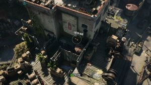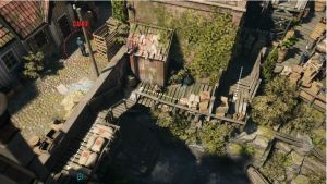 Continue making progress until you finally escape the residential building. Here you’ll be instructed to make your way to the North West site, but you want to take the opposite path instead and descend using the two ladders.