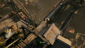As you make your way through the level, you’ll eventually run into the city’s police again. Here, you’ll drop into a closed-off area with a bunch of wooden barrels and boxes stacked up and a single guard patrolling the area. There’s a point in the fence you can climb over and make your way forward, but instead, you want to approach the north-west side where the third collectible can be picked up from a wooden box. Make sure the guard is looking the other way when you climb the fence!