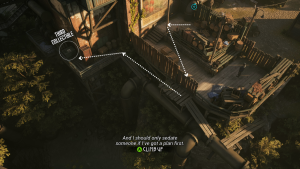 After your reunion with Alva, you’re supposed to descend from the elevated location using a ladder, towards the objective marker. Instead, go straight towards the bridge and make your way to the end of the platform.