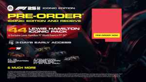 If you pre-order F1 25, you will receive the F1 75 Celebration Pack, F1 25 Starter Pack, and 5000 PitCoin.