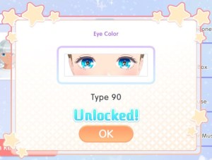 The Eye Color Type 90 is light blue with a flower pattern around the pupil, as shown above.