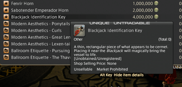 If you’re a fan of Final Fantasy six, you’ll notice this iconic airship from miles away. Luckily, you won’t need to do anything absurd or high-level endgame content to obtain it. The Blackjack Identification Key is available for purchase at the Gold Saucer. It cost 4 million Gil at the Prize Claim counter III.