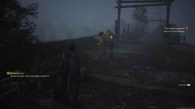 You’ll then be given a side quest in Marth’as Rest that has a green plus sign. Chances are this is the first time you’ve seen this icon in FFXVI. Go over to the man in Martha’s Rest and accept the quest. He will be standing next to a yellow Chocobo.