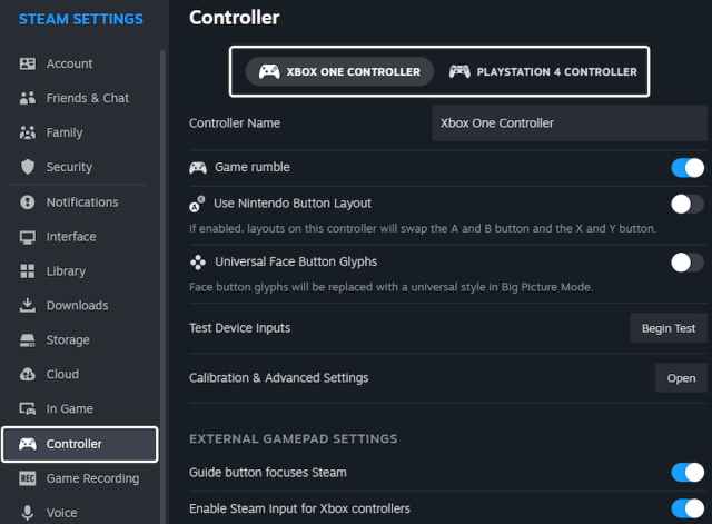 If your controller isn’t working even after disabling Steam Input, I recommend making sure that your connected controller is being detected by Steam. To check detected controllers in the Steam client, simply select Steam > Settings > Controller: