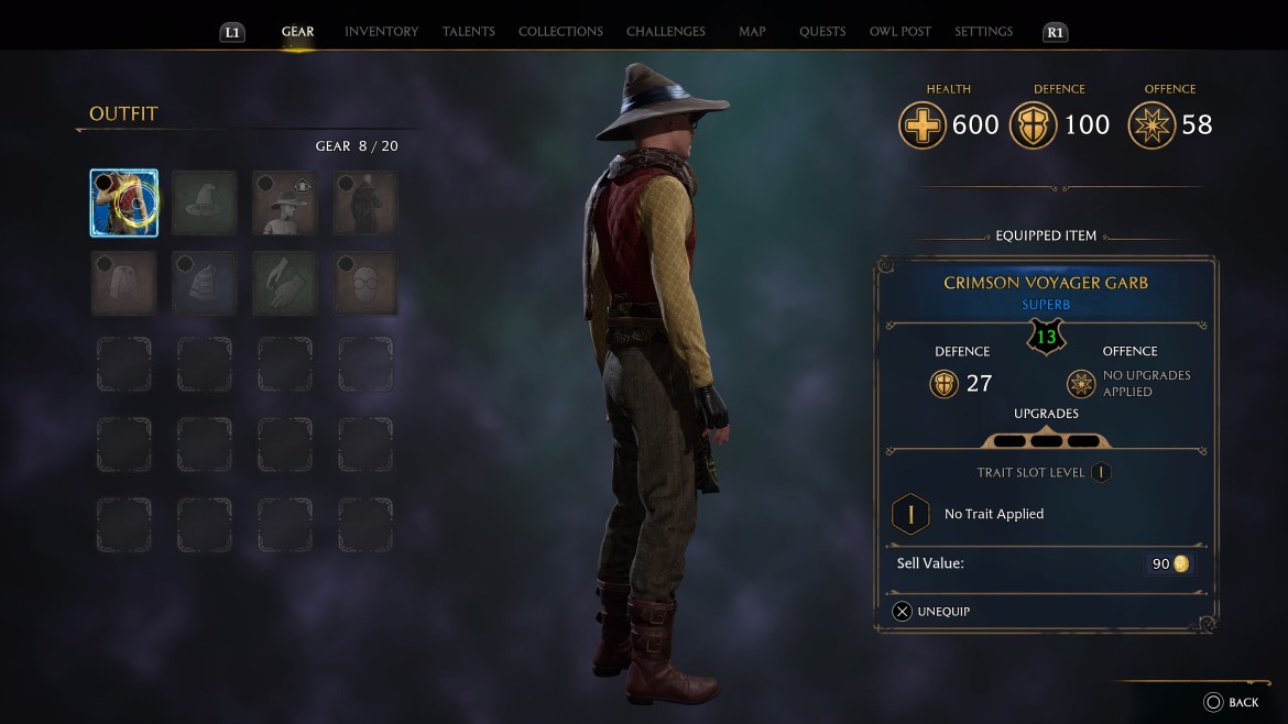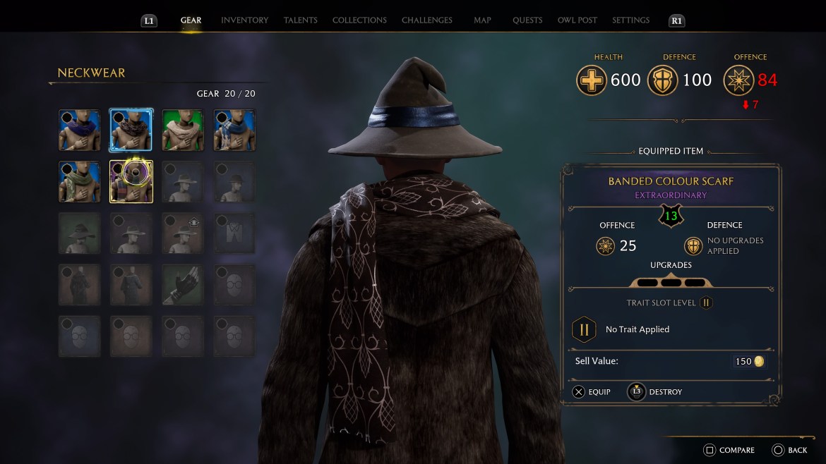Extraordinary gear is second best among Hogwarts Legacy’s magical wardrobe. This gear rarity can be identified by its purple text and background. Extraordinary gear provides offensive or defensive increases corresponding with the clothing item type and can be traded to merchants for 150 Galleons. Furthermore, this tier of gear can be upgraded and have traits applied.