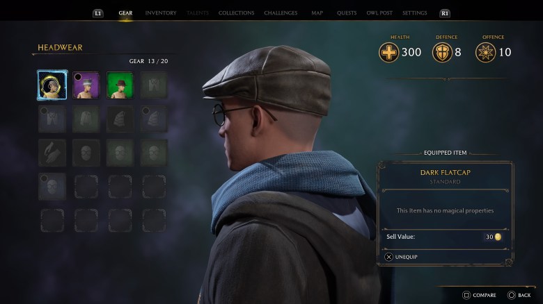 Standard gear is just regular clothing (as you read this article right now, you are probably wearing some standard gear of your own). This gear rarity can be identified by its gray text and dark background. In Hogwarts Legacy, Standard Gear has no magical properties and will not buff your offensive or defensive stats. Standard gear can be sold for 30 Galleons, but in my experience some shops will not even buy Standard gear, as the non-magical items can be traded for zero Galleons in many cases. Either destroy or sell these items, as they will just take up inventory space.