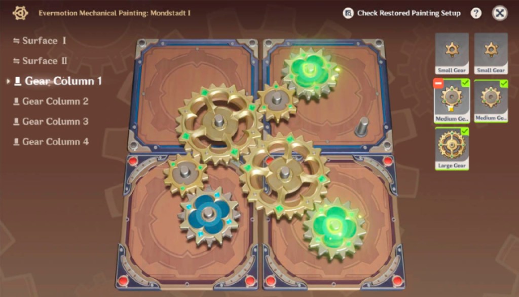 Making its return in the TCG-centered update for Genshin Impact 3.7, we have the Evermotion Mechanical Painting: Invoker event. By turning the surfaces and tossing new gears in them, our goal is to make both preexisting gears connect. We get new challenges every 2 days, with their own good share of Primogems to obtain in each of them.
