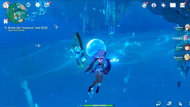 The first objective is to save Petit Chou from other Oceanid enemies. This will be a constant in this questline, so bring suitable characters to deal with Hydro. The water will come down, and you get access to the protective crystals.