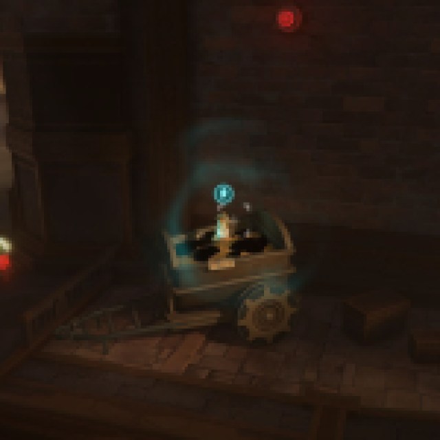 Pull any of the leftover gears and bring it to the room that just opened. Grab the energy block and place it next to the panel to activate it. Now just like you did back at the beginning of the quest, hit “Stop” once it points to the locked door.