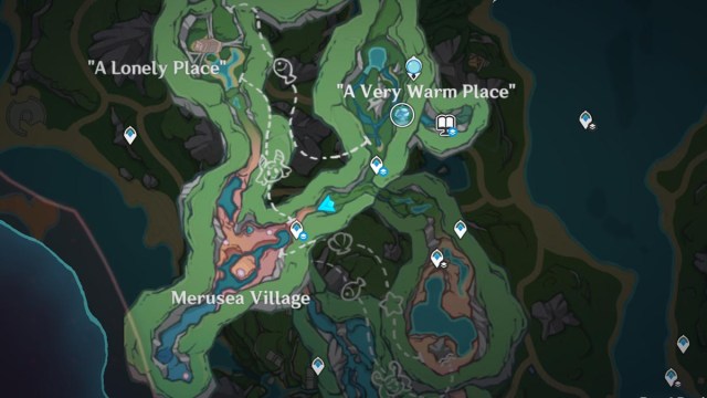 First of all, you need to have access to the Merusea Village underground area in Fontaine, unlocked through the Ancient Colors World Quest. Once you’re here, head to the Merusea Village Waypoint and walk a few steps back until you spot Cosanzeana, a small Melusian who’s tending to her (non-existing) garden.