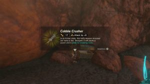 It must be noted that the Cobble Crusher will be region specific, and it’s highly unlikely you’ll find it anywhere else except the Goron region and the region in the Depths directly below. The chest that contains the Crusher is embedded in the rocks on the side of the mountain and must, ironically, be broken to get to the chest.