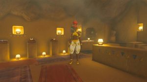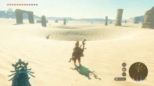 To find both of these weapons in one location, you can search the ruins in the Gerudo Desert. The wormholes in the sand lead to these ruins. You can find a Gerudo scimitar and shield in the Ancient Altar Ruins. It’s the easiest to locate in the desert. Search for the section and coordinates indicated on the map supplied above, where there are 12 wormholes in a circle as illustrated.