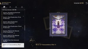 The Mirror of Transcendence event is available on all Simulated Universe modes (regular, Swarm Disaster, or Gold and Gears) and can appear anytime you enter an Occurance domain. After a few lines of dialogue, you’re presented with two options: ask for a reward or get out of the mirror.