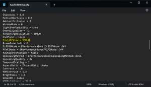 - Search for “FieldOfView“, and set its value to your desired FOV value. For example, we’re setting it to 130, and it should look like this: