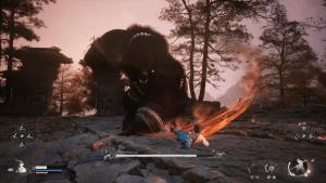 As intimidating as Black Bear Guai first appears, this is one of the easier bosses, especially if you have the Fireproof Mantle, which significantly reduces incoming fire damage.