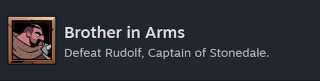 Beating Rudolf, Captain of Stonedale in Absolum, will unlock the Brother in Arms achievement.