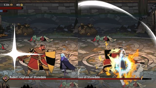 Since Rudolf isn’t confident in his skills to take you on his own, he’ll pound his shield and call for reinforcements.