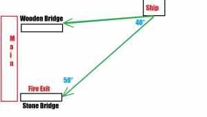 - Go back over the stone bridge, turn 40 degrees to the left, and march forward until you spot your ship.