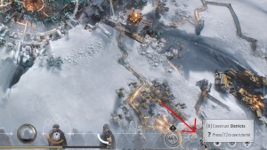 Each district has a specific purpose, but they have the same construction mechanics. You’ll frostbreak tiles to clear areas for construction. Once the area has been cleared of the frost, you can start building districts on them. You must place a specific number of tiles to construct a single district (usually six tiles). Some tiles have different icons that signify the type of resource available in the tile.