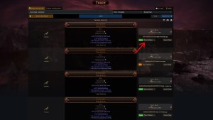 Once you have the filter set, the item listing will default to show the cheapest ones first. Search for the item you want and press the “Direct Whisper” below the player’s name. This will automatically send a message to the player in the game, which means you should also have the game open when doing this.
