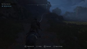 If you have noticed a little white line guiding you to whatever quest or objective you are tracking, it is a feature called Pathfinder. To turn on Pathfinder, you can tap and hold left on the D-pad to turn it on. You don’t have to be on a mount to turn on the guide or Pathfinder.