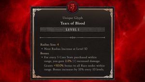 Players will receive two rewards for completing the Abattoir of Zir for the first time. The first reward is the Tears of Blood Glyph, which will increase the bonus of all rare nodes within range on the paragon tree when slotted in.