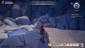 The entrance to the cave is near the ponds just south of the mountains right of Hideaway Bluffs. Enter here and follow the path straight. Don’t drop down. Instead, continue until you hit the second geyser and turn right. You’ll see a little diamond tile and a cave that burrows further into the mountain. Jump over the rocks and follow it.