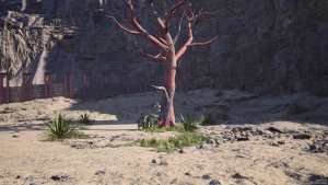 Next, we’ll tackle the birdhouse in the middle of the map. Simply walk up the hill through the water or use your buggy to make your way across. The red tree will be at the top of the hill. Place your trap within.