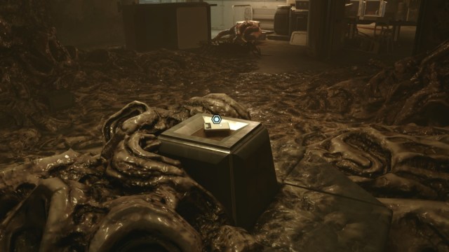 Once you’re onboard the Beagle, head through the ship while dealing with the robotic defense scattered throughout. At one point, you might come across a computer owned by a Doctor Zhao next to a locked door. You’re free to ignore this for now, as it just offers a faster way back out of the ship later. Once you’ve made it all the way through the ship, you’ll reach the Beagle’s Datacore, which contains the Security Override Code. Download it, then leave the ship.