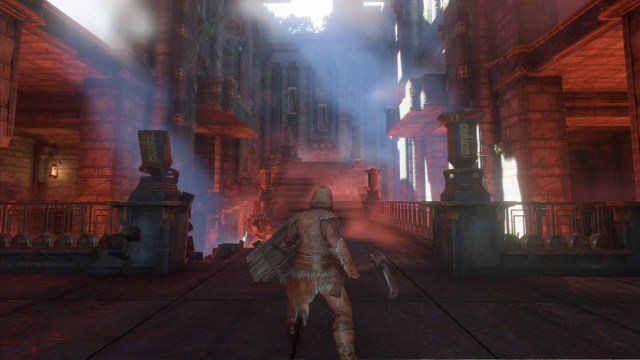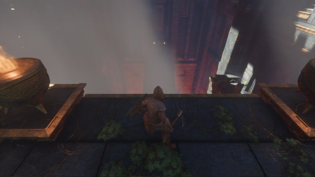 You’ll need to jump across to the platform that is to your left and jump once again to land on the second platform. Make sure that you have enough Stamina, as you’ll have a small bit of climbing to do on the lattice ahead. Make your way into the small doorframe, and get ready to do a simple timing puzzle.