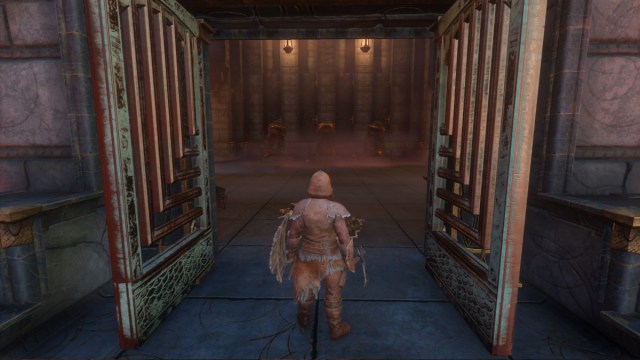 You’ll find the proper doorway to leave through is the one that is surrounded by all of the metal casks. If you’re looking for some extra materials, I recommend breaking those open as they’ll drop Metal Sheets, Wax, Salt, and other valuables. Once you’ve gathered up what you need, head directly out of this room and make an immediate right turn.