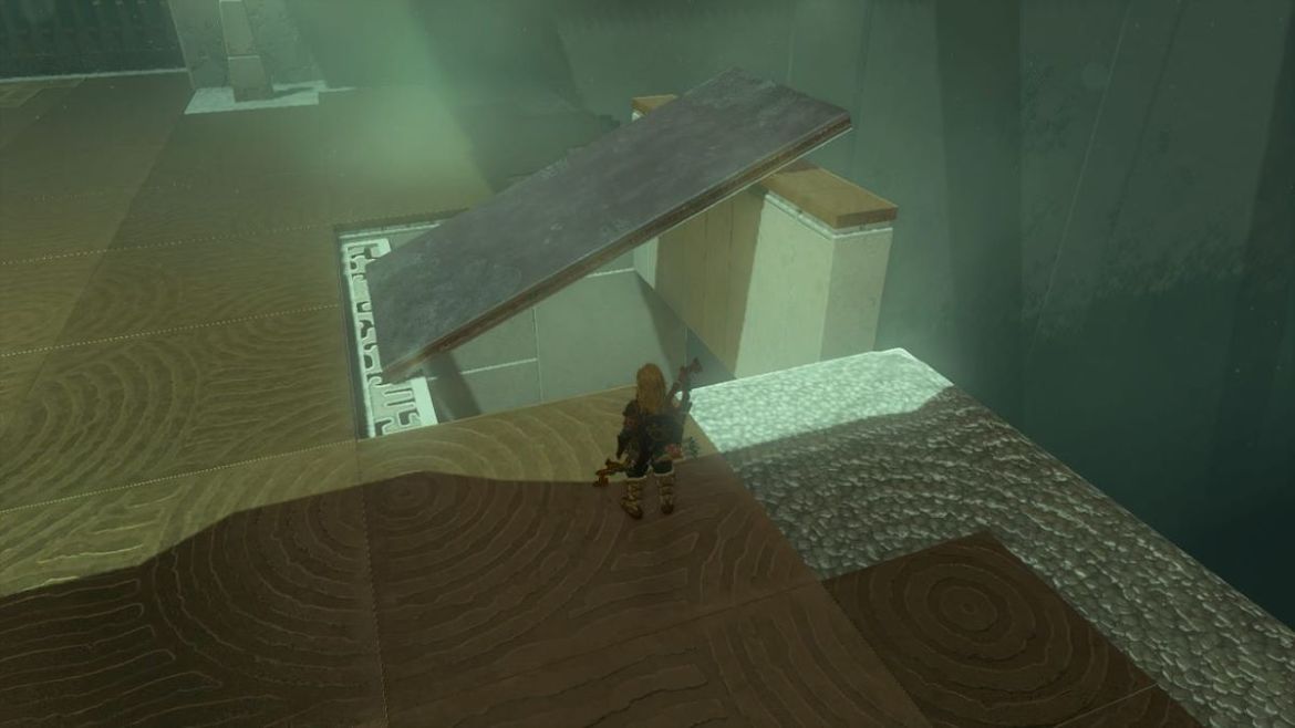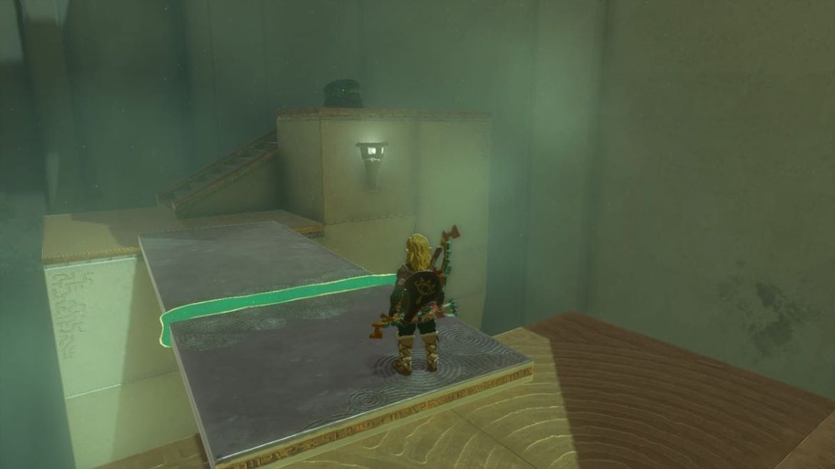 It’s TotK, so of course there’s a hidden treasure! Walk into the second room and on your right you’ll see a platform with a chest. Don’t try to fly over to it. I did it so you don’t have to – you’ll definitely die.