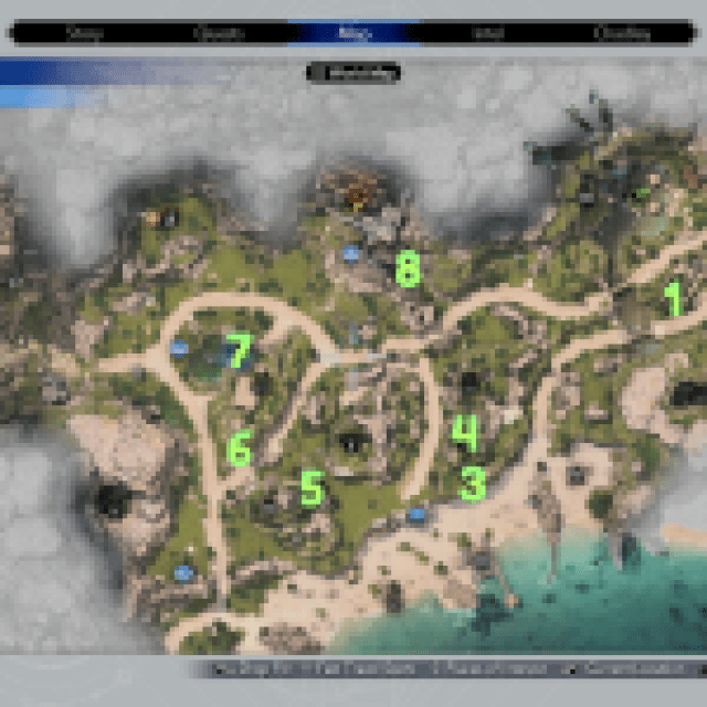 From Costa Falls, head south and you’ll see the first set of ziplines. Climb up the yellow-marked steps or scramble up the rocks to reach them. The first bundle of refurbished materials will be at the top of the platform, where the zipline is connected. It will look like a bundle of sticks.