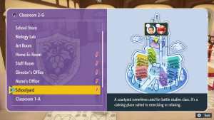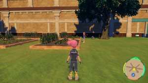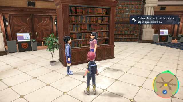Head to your Paldea Academy and enter from the main entrance. Take a left at the front desk and you’ll see Giacomo and Eri standing in front of a bookshelf, talking. They’re almost unrecognizable without their trademark outfits.