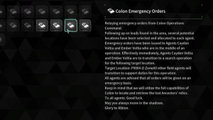 Now that you have the record you were looking for, you will need to play it to complete the mission. Open the map and navigate to the Journal tab. Open the Records menu and click on Descendant. Here, you will find all the records you have collected. Click on the Colon Emergency Orders record to play it and complete the Bunny Descendant quest.