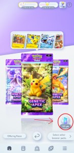 To open up the crafting menu, go to the pack opening page by tapping the booster packs on the home page. It’ll take you to the pack opening page, and there will be a tiny icon in the lower-right corner of your phone that leads to the Pack Points Exchange. Tap the button as seen in the image above. It’ll open the whole list of cards for the collection, and you can craft every card available except for promo cards.