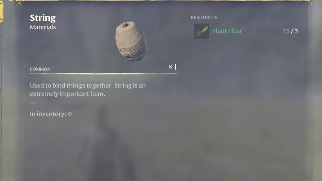 If you’re looking to make plenty of String, you’ll need to get your hands on some Plant Fibers. For every 3 Plant Fibers, you’ll receive a wound spool of String, which can be used to get plenty of new equipment ready for your warrior.