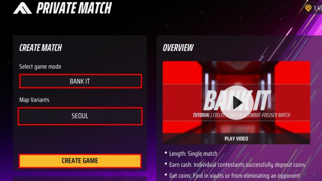 • Once you have selected the game mode and your chosen map, click Create Game to get your Private Match started.