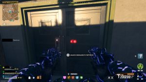 Once taken out, use the elevators in the lobby to travel to the top floor and be greeted by two large metal doors. The player with the Fortress Keycard can unlock the doors.