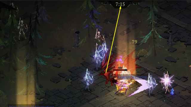 Gargoyles spawn at 7:00, so just try to leave some XP gems to pick up when they show up to get your Gem High bonus started and rush into them without mercy or fear. Dodge their attacks by going into them so that you can remain in the hitting range. I managed to kill them in seven seconds the first time I attempted this feat. In fact, I was utterly shocked that it went by so fast. As soon as they got into the execution range, they got killed instantly. I made an imperfect build that lacked a lot of cool stuff, but it was still manageable, as you can see in the screenshot below.