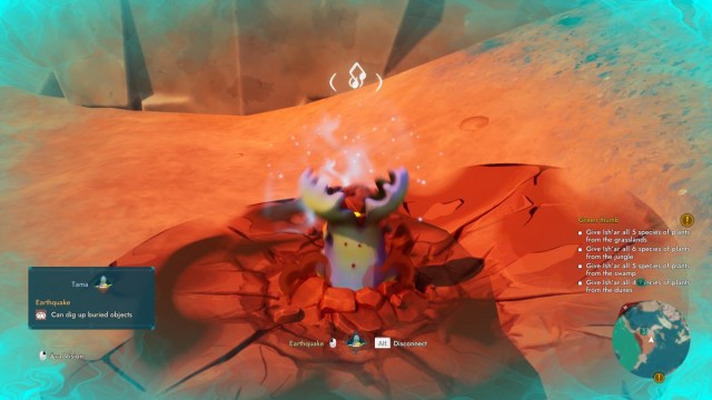 Once you have connected with a Tama, you can use their Earthquake ability to target the mound and retrieve the treasure. Disconnect from the Tama and then pick up the treasure. Make sure to pet the Tama for a job well done.