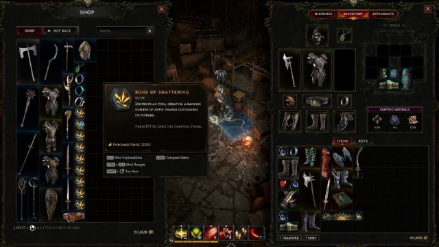 The Rune of Shattering is an uncommon item drop when progressing in the endgame. However, you can also buy a Rune of Shattering from the shop vendor in your local town. It costs 2,000 gold per piece, which is relatively cheap, especially since you’ll be farming hundreds of thousands of gold in the endgame.